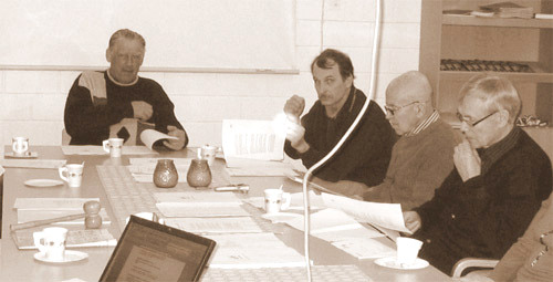 Kalevi osallistui viime vuosinakin aktiivisesti Rastivarsojen kokouksiin. Vasemmalta Tauno, Jorma, Kalevi ja Heikki seuran kevätkokouksessa maaliskuussa 2010.