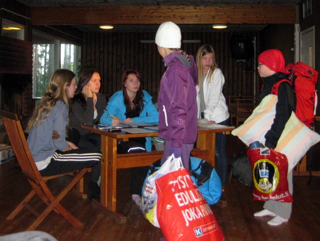 Naiset todella herkullisten aterioiden takana: Riikka, Teija, Teija ja Tiina    Leirikeskus on varattu jo vuoden päähän. Nyt katsellaan sitten, millaista tilausta tällaiselle leirille on. Voisi sanoa, että on löydetty toimiva konsepti jota kannattaa toistaa useampi vuosi.     Leiriläisten palautetta:  Hyvää oli:  - Parhaat ohjaajat!!! (monessa palautteessa)  - Oli myös sopivasti vapaa-aikaa  - Ruoka  - Sauna  - Kaverit  - Harjoitukset  - Hyvä ohjelma  - Sain tietää, että puhuin unissani  - Nukkumapaikat  - Lipunryöstö  - Yösuunnistus    Kehitettävää:  - Liian lyhyt leiri  - Liian aikainen nukkumaanmeno  - yösuunnistus  - liian kylmä keli ja liian kylmä vesi, leirin pitäisi olla aikaisemmin  - ahdas sauna (jossain vaiheessa kaikki 36 nuorta taisivat tunkea yhtaikaa lauteille)  - hiiri (leirikeskuksessa oli oma lemmikki)  - ei ollut löylykisaa    Eräältä nuorimmalta osallistujalta kysyttiin, oliko kivaa? Vastaus: ”Oli”. Kysyttäessä, mitäs leirillä tehtiin, mikä jäi parhaiten mieleen: ”En mä muista”.    Ohjaavien nuorten oma palaute (Kia-Lotta, Roosa ja Annika)  Hyvää oli:  - Parhaat ohjaajat (vaatimattomuus kaunistaa)  - Harkat onnistu loistavasti  - Loistavaa ruokaa  - Käytiin uimassa  - Nuoret sai järjestää leirin kokonaan  Kehitettävää:  - Ei mitään    > Kuvia  > Leirin ennakot    Leirin löytötavarat