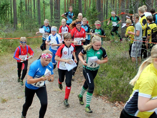 Nuoret ElimäelläKävimme mahtavan isolla joukolla (24 nuorta suunnistajaa, 6 joukkuetta) harjoittelemassa viestisuunnistusta Elimäellä 7.8.2013.    Kuusankosken Urheiluseura järjesti Kaakon Alueen avoimen Nuorisoviestin Haukkavuoren hiihtokeskuksen maastossa. Kisailu käytiin tyttöjen ja poikien sarjassa (poikien joukkueessa sai juosta tyttöjä) ja molemmissa sarjoissa oli neljä osuutta. Aloitusosuus oli enintään 14-vuotiaille, kakkososuus rastireittiläisille (10 v), kolmas osuus tukireittiläisille (12 v) ja ankkuriosuus 16-vuotiaille. Ykkös- ja nelososuuksilla oli viestihajonta.    Maasto oli suurelta osin samankaltainen kuin tuleva Nuorten Jukolan 2013 kilpailumaasto Anjalassa noin 25 km päässä. Myös Haukkavuorella on tiheä polku- ja latupohjaverkosto. Kilpailukutsussa mainitut ”maltilliset korkeuserot (35–40 m)” osoittautuivat +26 asteen hellekelissä aika työläiksi, ja loppusuora noustiin juosten mäen päälle. Kaikkinensa kyse oli erinomaisesta harjoituksesta tulevia viestikoitoksia varten. Viestissä on aina oma jännityksensä ja toiminnat, joita pitää harjoitella.