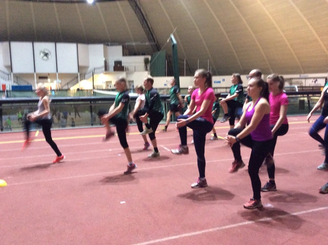 Juoksutekniikkaa Vierumäen sisähallissa.    Lounaan jälkeen kartoitimme noin 30 erilaista mäkeä. Tämän toteutimme muovailuvahalla ja karttapaloilla. Lähes 30:stä mäestä noin seitsemän muotoutui tunnistettaviksi. Olisi niistä enemmänkin tunnistanut, jos aikaa olisi ollut hieman lisää.    Iltapäivän pääharjoitus painoi päälle. Sibbo Vargarnan kanssa toteutettu parisprinttiviesti päästiin viemään läpi lähes ennen pimeää. Ilmassa oli suuremmankin viestisuunnistuksen tuntua, kun joukkueet juoksivat 2 x 3 osuuksisen harjoituksen. Vaihtoalueella oli kisaorganisaatio tehnyt perusteellista työtä: vaihtoleimaus, kartanluovutus, numeroidut kartat telineissä, vaihtopuomi ja vaihtoväliajat. Perinteistä rastivarsojen kisajärjestelyä, kun ottaa huomioon vielä 6 eri hajontaa joukkueiden välillä.