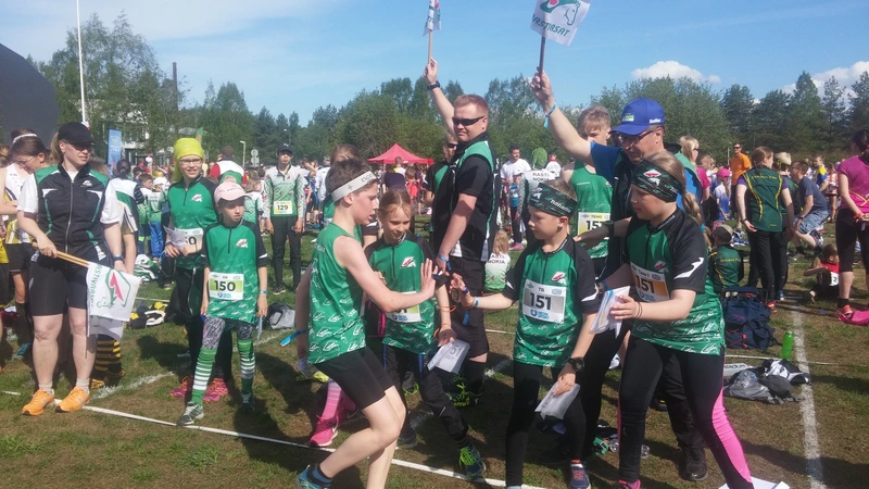 Leimausleiri 2017, Kuortane   Sähäkkää menoa leiriviestissä     Leiri alkoi maanantaina 5.6 klo 7.30 bussimatkalla Kuortaneelle yhdessä naapuriseurojen Hollolan Urheilijoiden ja Lahden Suunistajien kanssa Ramin kyyditsemänä.    Leirin ohjelma oli tututtuun tapaan tiivis.Sinisen väriryhmän ohjelma.     Sää suosi maanantain iltasprinttiä lukuunottamatta, jolloin vettä tuli taivaan täydeltä jo avajaisten aikana.Kuvia leiriltä löytyy täältä     Kotimatkalle lähdettiin torstaina 8.6 puolenpäivän aikoihin heti leiriviestin ja lounaan jälkeen. Orimattilassa oltiin noin klo 17 aikoihin.