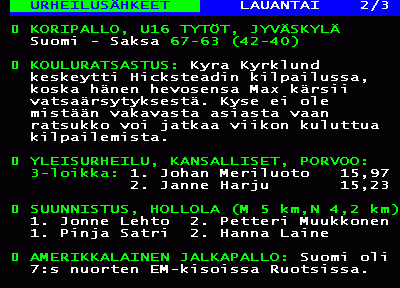 Viikonlopun tulossatoa + kuvia Lahti-Suunnistuksesta ja Tanskasta (WOC)Rastivarsattaret näyttivät suunnistuksen mallia lauantain kisoissa. Isommissa ympyröissä eli MM-kisoissa Tanskassa aloitettiin keskimatkan karsinnalla. Irina Mikhalko selvisi finaaliin rutiinilla ollen 12. omassa erässään. Finaali juostaan ensi viikon perjantaina.